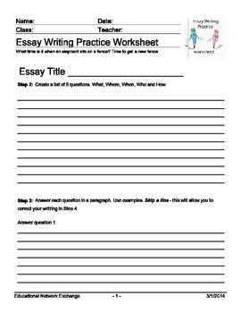 Essay Practice Worksheet. Free interactive exercises to practice online or download as pdf to print. But in groups of two, they feel a bit more comfortable and less stressed out.