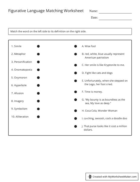 Web how can i use this figurative language worksheet? Match the phrase to the correct type by writing the letter in the blank. Web matching worksheets and identifying figurative language worksheets are a great way for visual learners to show what they know, when writing may be challenging for them.
