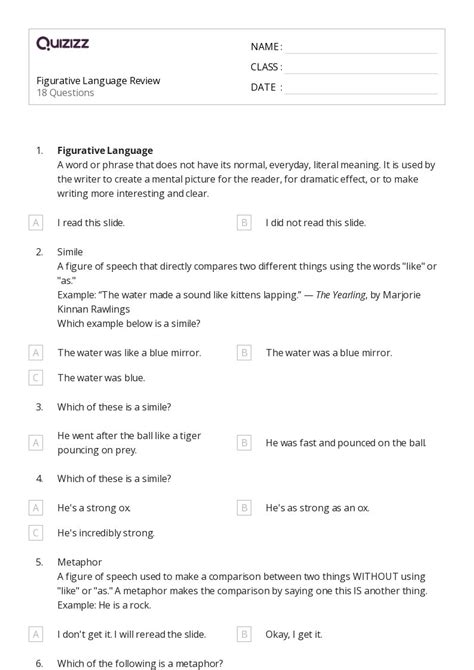 Some of the worksheets for this concept are figurative language, alliteration onomatopoeia metaphor. Web figurative language interactive activity for grade 7. Award winning educational materials designed to help kids succeed.