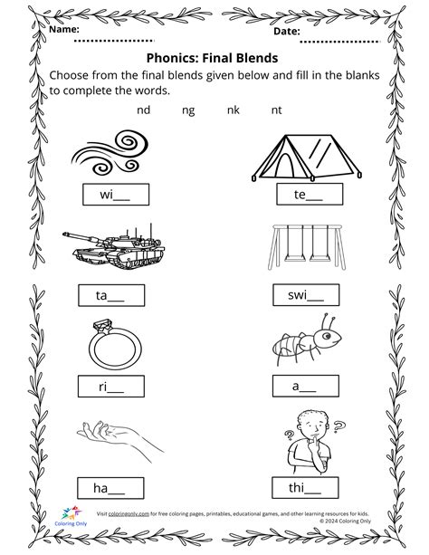 Kids Choose The Correct Ending Blends From The Boxes And Write Them To Complete The Words.