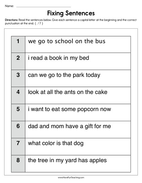 Web fixing sentences worksheet using fixing sentences worksheet, students rewrite the sentences with the correct use of capital letters and end marks to practice writing. With these daily worksheets, students can practice their grammar and proofreading skills. Students will practice their capitalization, punctuation, and dialogue.